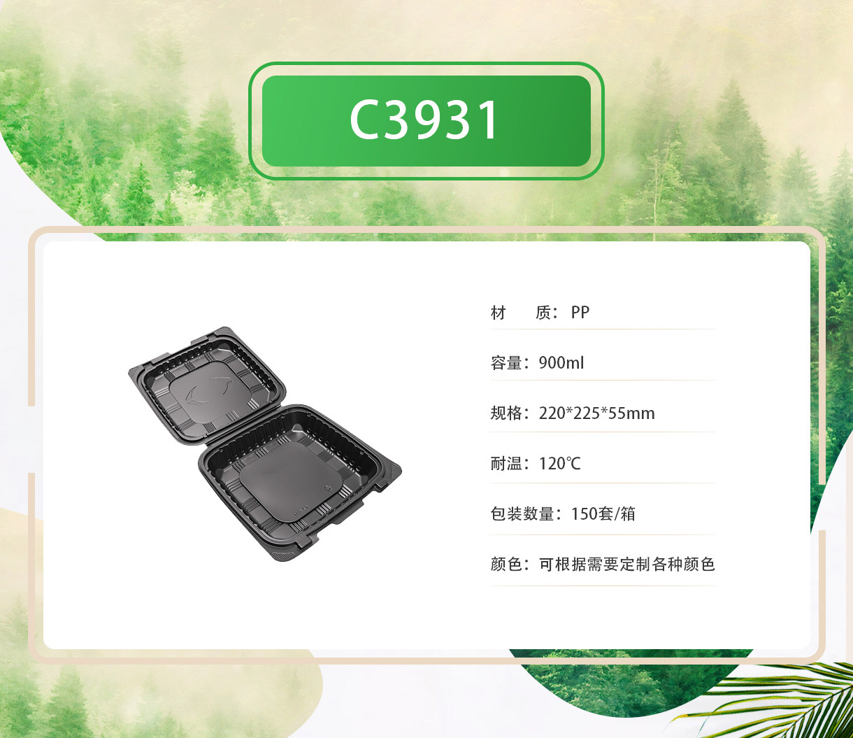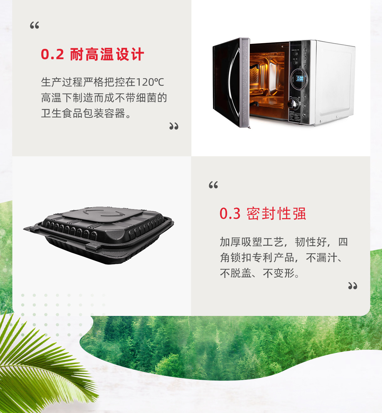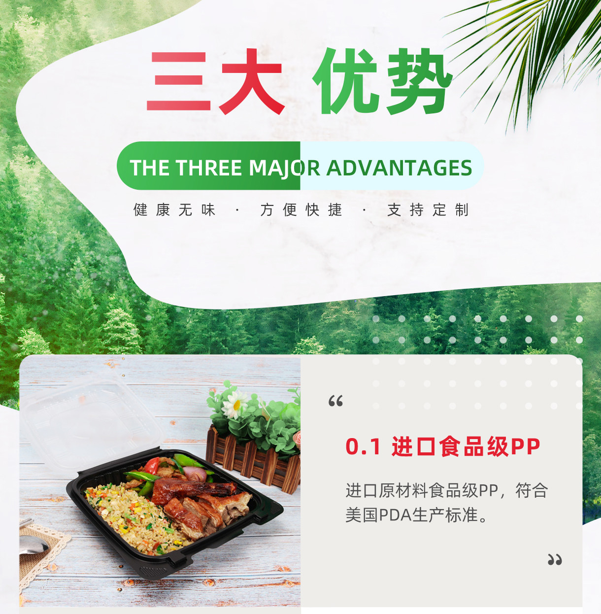 一次性pp飯盒帶蓋封口黑色方形一格格快餐盒
