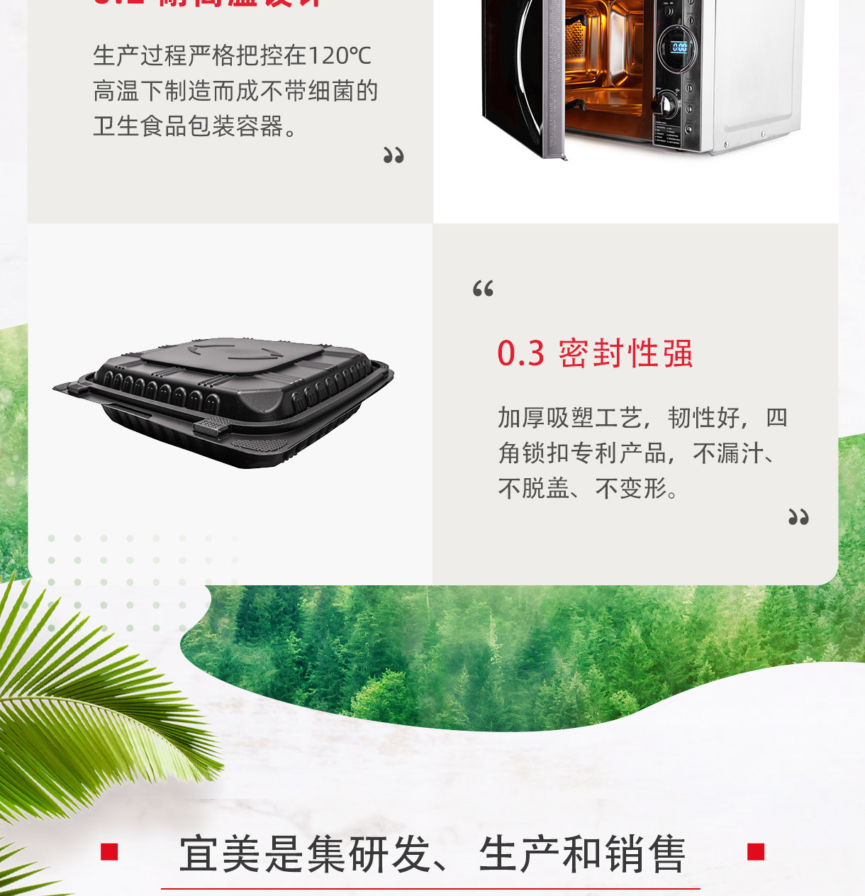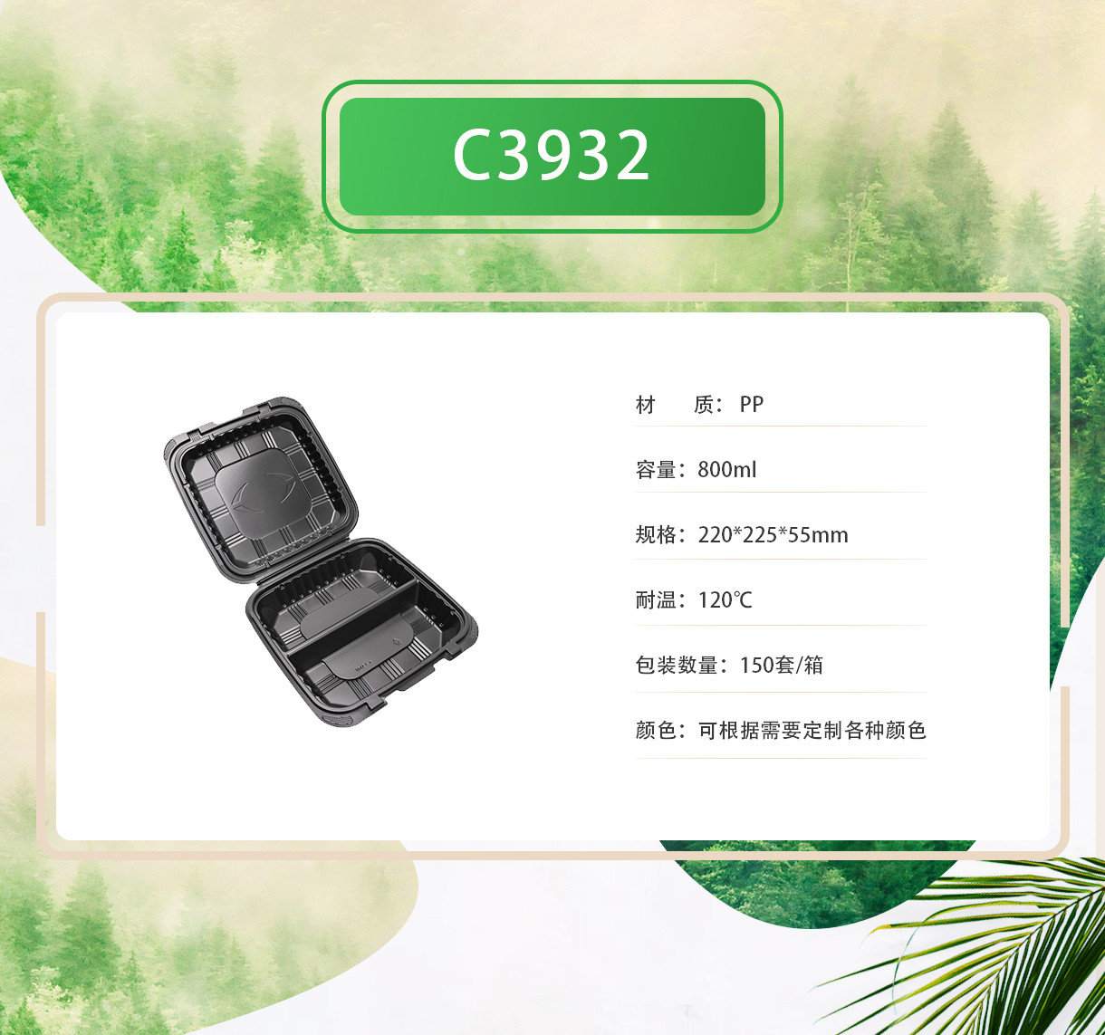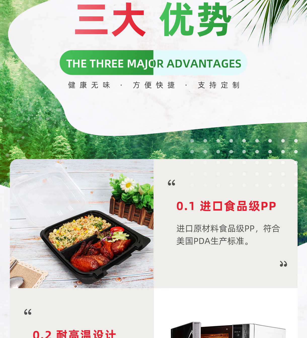 一次性pp飯盒帶蓋封口黑色方形兩格格快餐盒