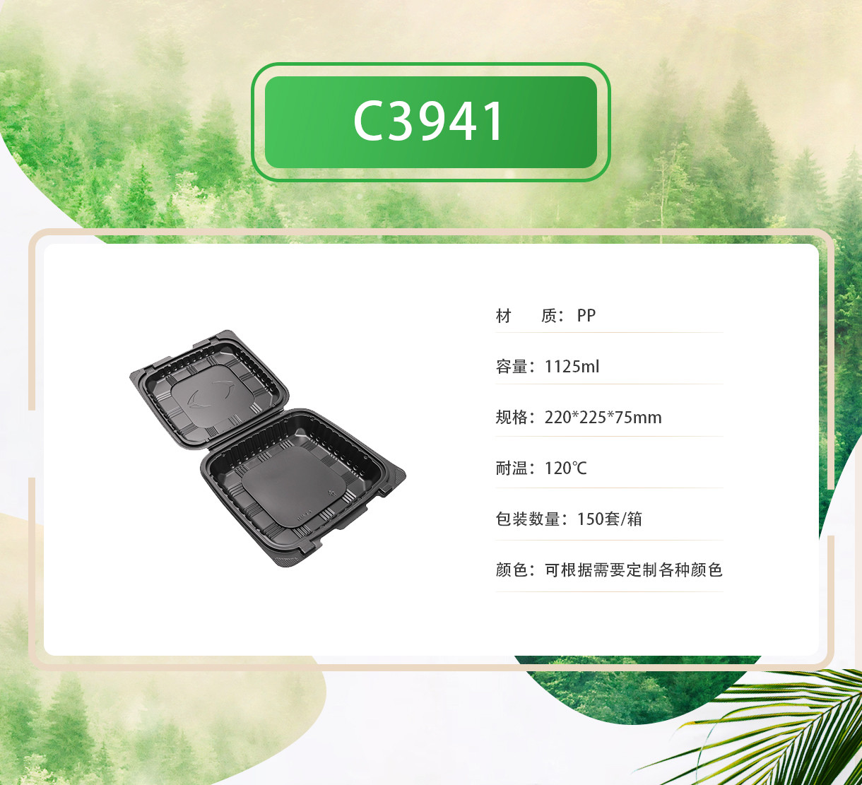 一次性pp飯盒帶蓋封口黑色方形一格格快餐盒