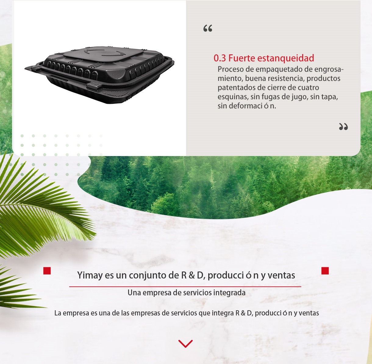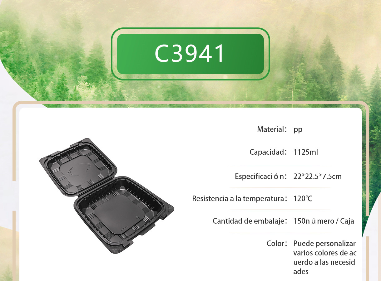 Caja de comidas desechables de pp con tapa y cierre, caja de comida rápida cuadrada y negra